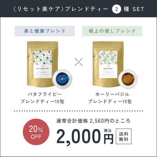 健康とストレスケアに。バタフライピーブレンドとホーリーバジルブレンドのお得な飲み比べセット。